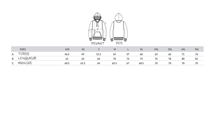 Pensez à regarder notre guide des tailles avec toutes les mesures !